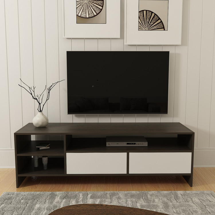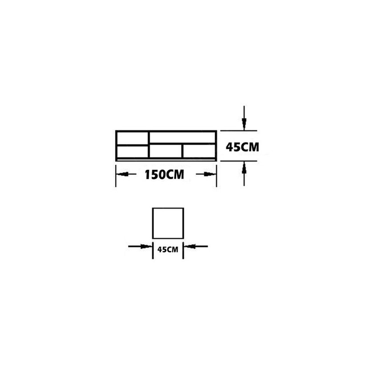 این میز تلویزیون دارای طول 150 سانتی متر با عرض و ارتفاع 45 سانتی متر دارای دو درب کشویی توکار است. دارای سه عدد قفسه بوده که مناسب نگهداری اقلام دکوراسیون منزل و انواع کتاب و مجله نیز می باشد.