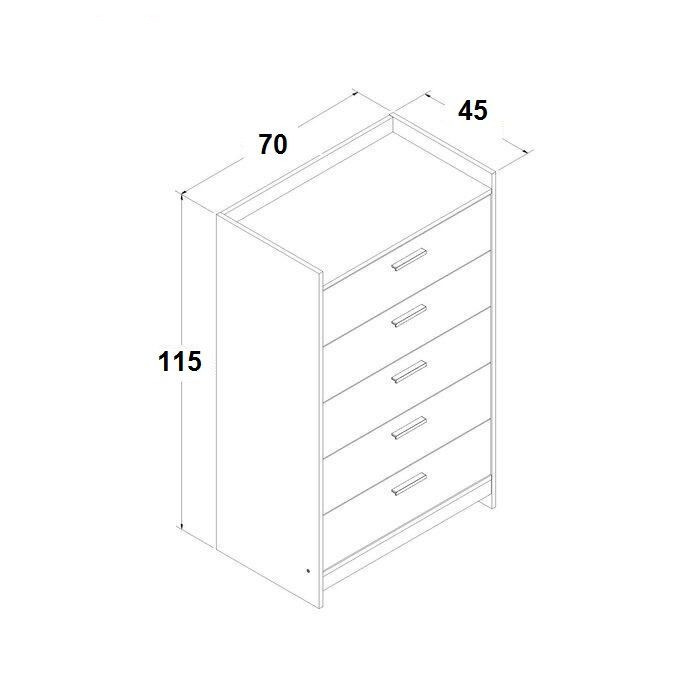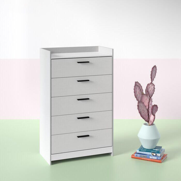 یک دراور زیبا، سفید و جادار که با 5 کشو توانایی نگهداری تعداد بیشتری لباس را نسبت به موارد مشابه داراست.