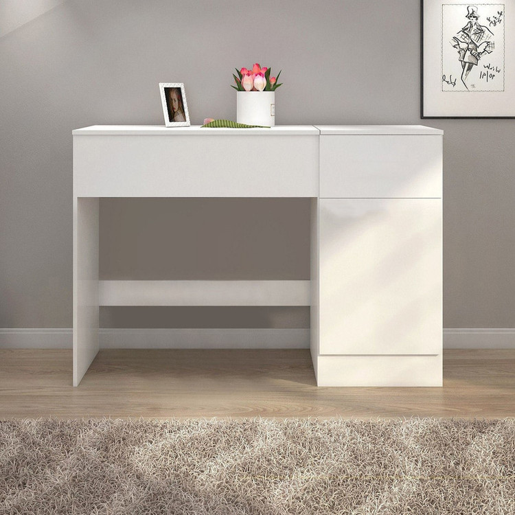 میز تحریر مدل افرا دکور مناسب برای اتاق خواب میباشد.این میز علاوه بر اینکه یک میز تحریرشامل: کشو و یک کمداست، قابلیت استفاده به عنوان یک میز توالت یاآرایش را دارامیباشد.به صورتی که با باز شدن صفحه رویی میز وبابالارفتن توسط جک تعبیه شده در داخل باکس آیینه پشت صفحه میز نمایان شده حالا میتوان بصورت یک میز آرایش از آن استفاده نمود.تولید شده از جنس MDFمیباشد