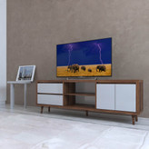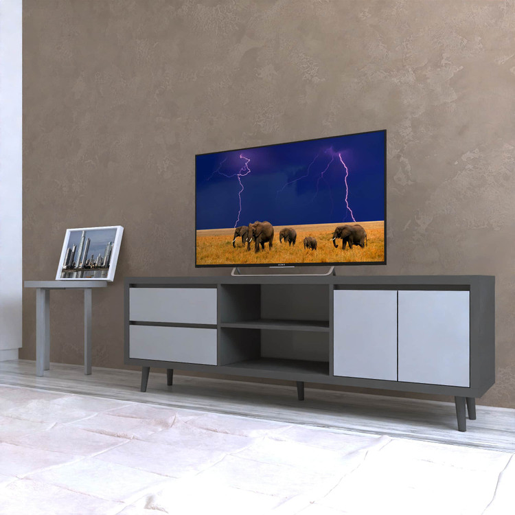 این تلویزیون استند دارای دو قفسه فضای بزرگ با دو کشو و یک کمد دو درب است که امکان می دهد وسایل خود را منظم کرده و حس مرتبی و زیبایی را به اتاق نشیمن خود اضافه کنید. ترکیب پایه های مخروطی چوبی با رنگ پوششی و ام دی اف سوپرمات ایرانی با کیفیت بالا رنگ آن را حالت خاصی می بخشد.