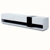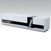 میز تلویزیون با طراحی زیبا با داشتن سه عدد کمد و سه قفسه که تضاد رنگ در آن را به زیباترین شکل ممکن به تصویر می کشد.